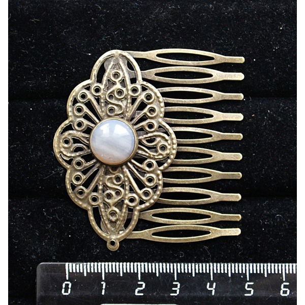 Заколка-шпилька из агата серого, круг 12мм, основа цвет бронза с узором