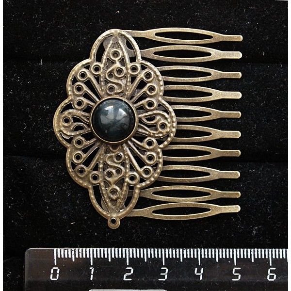 Заколка-шпилька из соколиного глаза, круг 12мм, основа цвет бронза с узором