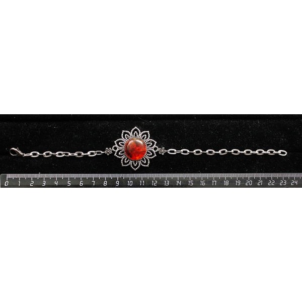 Браслет из авантюрина красного (синт.) "цветок", круг 18мм, на цепочке