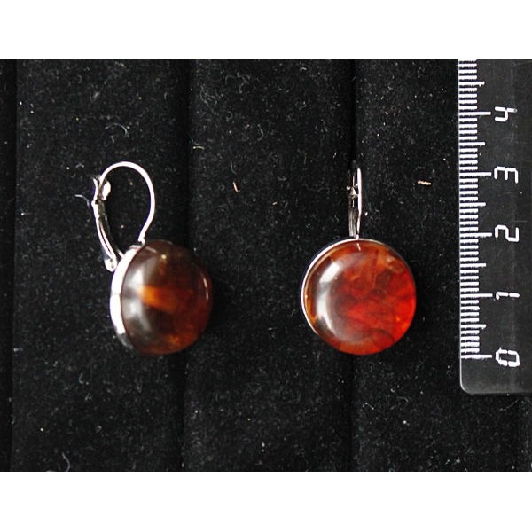 Серьги из янтаря темного (кабошон-мозаика), круг 18мм, замок петелька