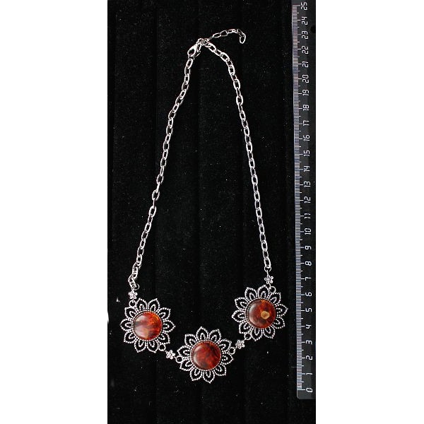 Колье из янтаря темного (кабошон-мозаика), "3 цветка" на цепочке, 48-50см, круг 18мм