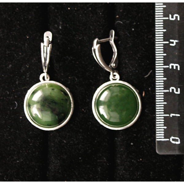 • Серьги из нефрита, круг 18мм, швензы посеребрение