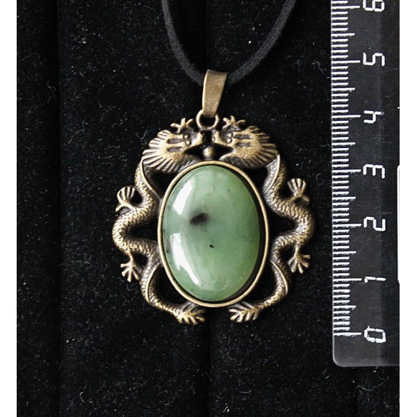 Кулон из нефрита, овал 25х18мм, оправа цвет бронза "2 дракона"