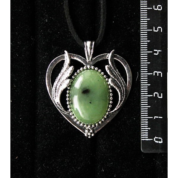 Кулон из нефрита, овал 25х18мм, оправа "сердце с крыльями"