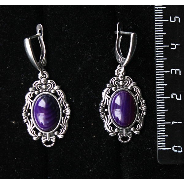 Cерьги из агата фиолетового (тонировка), овал 1..