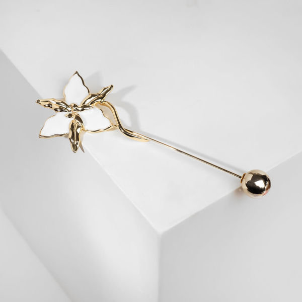 Булавка "Цветок", 10,5см, цвет белый, цвет золотистый