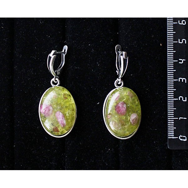Серьги из цоизита, простой овал 25х18мм, швензы посеребрение