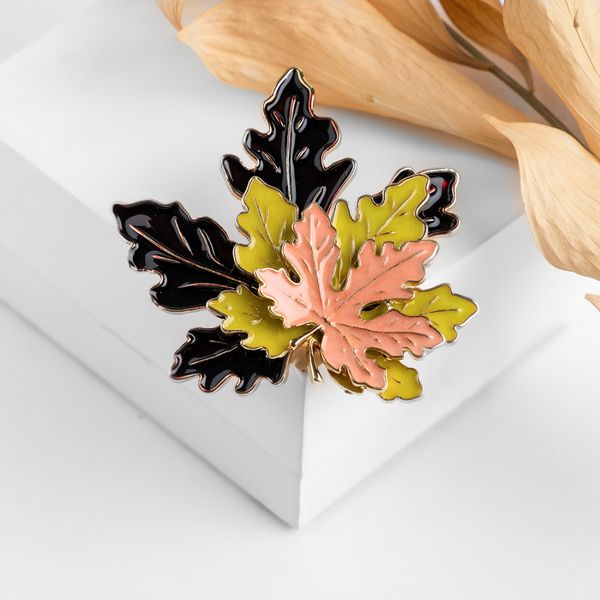 Брошь "Листья" три кленовых, цветная, цвет золотистый