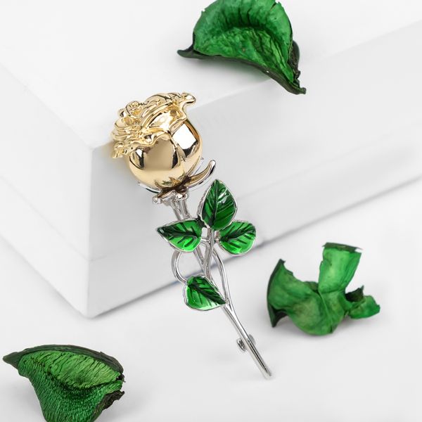 Брошь "Цветок" роза, цвет зелёный в серебряно-золотом
