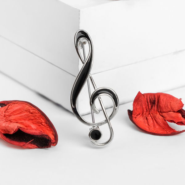 Брошь "Скрипичный ключ" классика, цвет чёрный, цвет серебристый