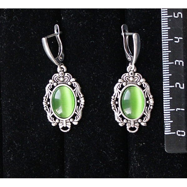 • Серьги из кошачьего глаз (синт.), цвет зелёный, "принцесса", овал 14х10мм, швензы посеребрение