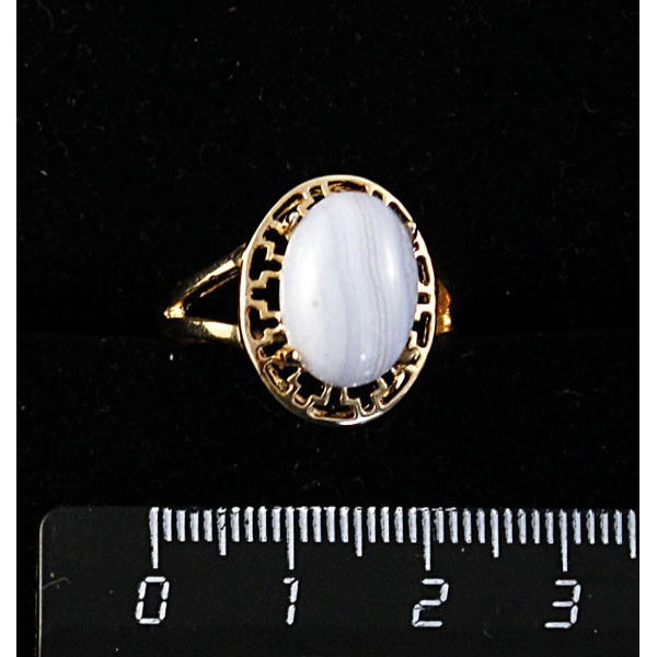 Кольцо c агатом голубым (сапфирин) , греческое, 14х10мм