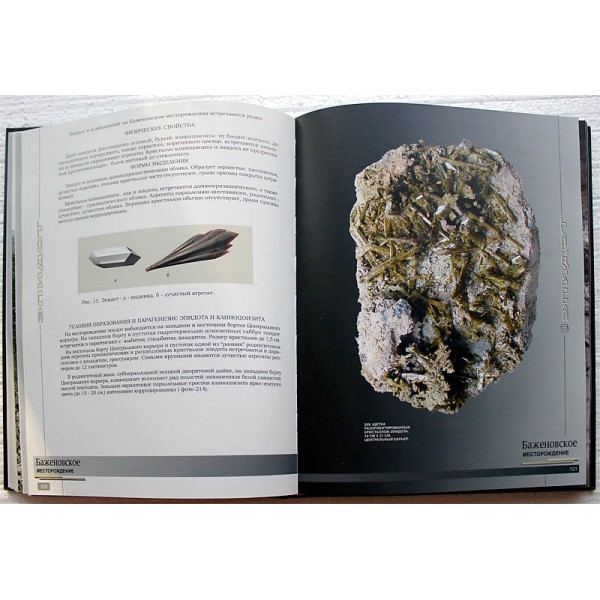 Книга посвящена одному из самых крупных минералогических объектов Урала — Баженовскому месторождению хризотил-асбеста. Материал для книги кропотливо собирался авторами на протяжении 30 лет. Большое количество качественных иллюстраций по минералам родингитов Баженовского месторождения, а также информация о нахождении, совместном образовании минералов в жилах, положении минерализованных образований в рудных телах представляют интерес как для специалистов, так и для любителей и коллекционеров минералов. Отличные фотографии образцов и качественная полиграфия не оставят равнодушными и тех, кто просто ценит природную красоту.