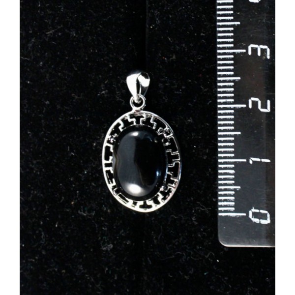 • Кулон из агата чёрного, "греческий", родиум, 14х10мм
