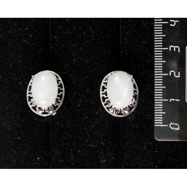 • Серьги из агата белого, "греческие", родиум, 14х10мм, замок гвоздик+лапка