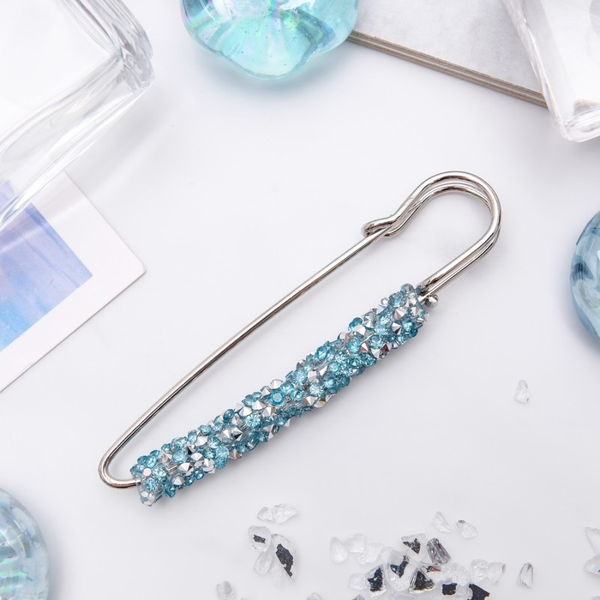 Булавка "Вечеринка" стразы, 7см, цвет голубой, цвет серебристый