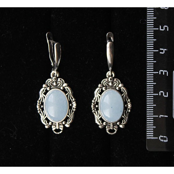 Серьги из агата голубого (сапфирин), "принцесса", овал 14х10мм, швензы посеребрение