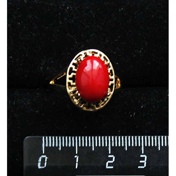 Кольцо c кораллом красного (иск.), греческое, 14х10мм