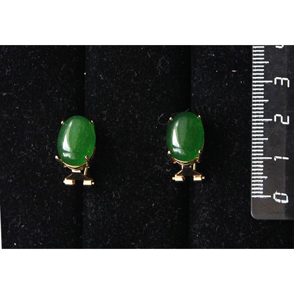 Серьги из кварца тонированного, цвет хризопраз, овал 14х10мм, замок гвоздик+лапка