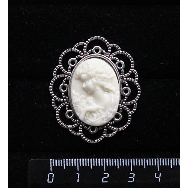 Кулон из крафтовой смолы, цвет белый, кабошон "камея", овал 25х18мм, оправа "медальон"