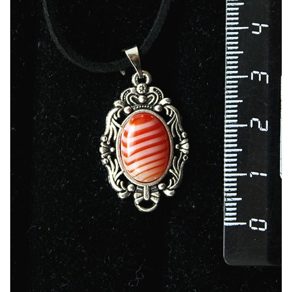 Кулон из агата красного (иск.), основа "принцесса", овал 14х10мм