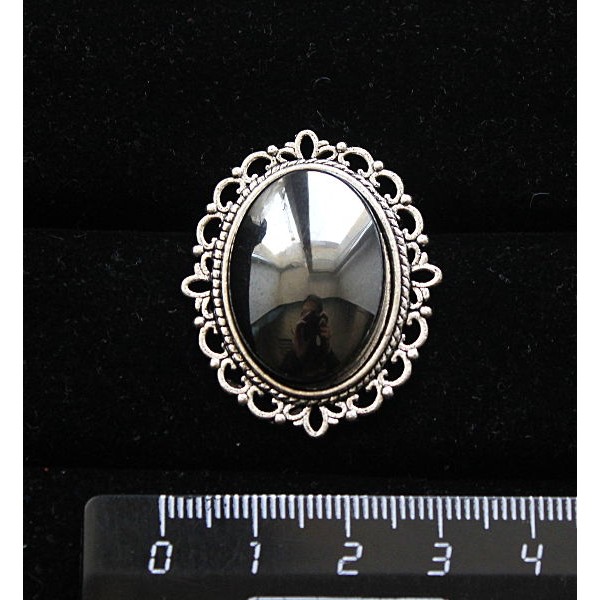 Брошь из гематита, с ажурным контуром, цвет ант. серебро, овал 25х18мм