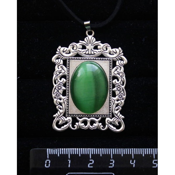 • Кулон из кошачьего глаза (синт.), цвет зелёный,"портрет", овал 25х18мм