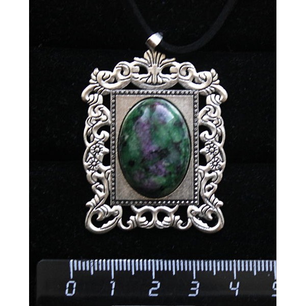 Кулон из хромдиопсида и граната, кабошон-мозаика,,"портрет", овал 25х18мм
