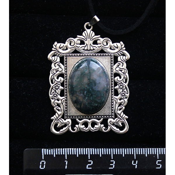 Колье-кулон из яшмы зеленой, овал 25х18мм, оправа медальон