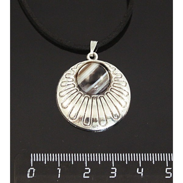 Кулон из cердолика полосатого, круг 12мм, "ракушка..