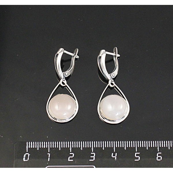 Серьги из халцедона розового, круг 12мм, "капелька", швензы посеребрение