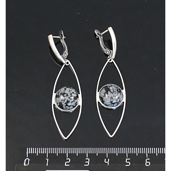 Серьги из обсидиана снежного, основа "принцесса", овал 14х10мм, швензы посеребрение