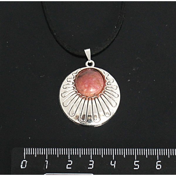 • Кулон из родонита, круг 12мм, "ракушка"