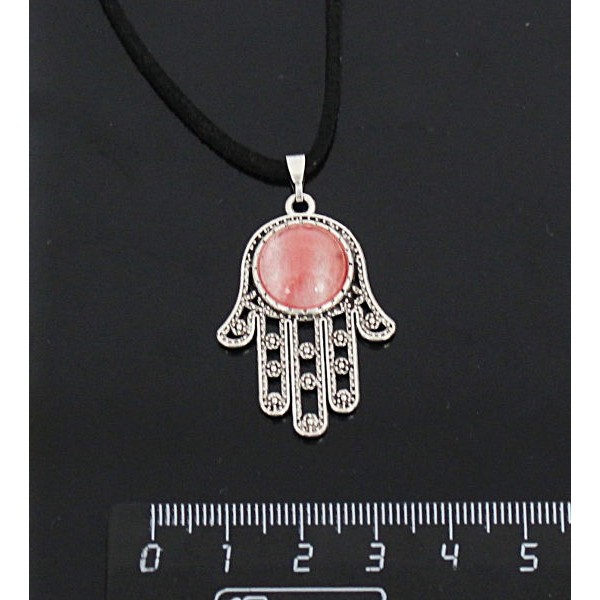 • Кулон из халцедона розового, круг 12мм, "хамса"