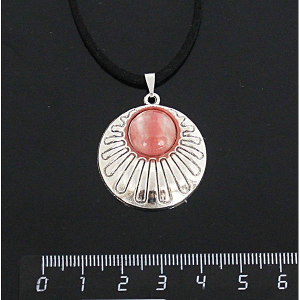 Кулон из кварца розового, круг 12мм, "ракушка"
