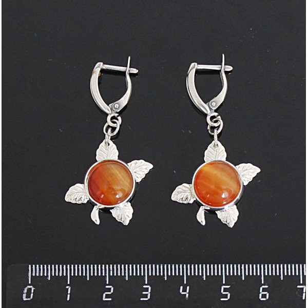 Серьги из сердолика, овал 18х13мм, оправа трилистник, швензы посеребрение