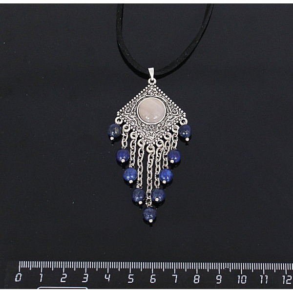 Кулон из лазурита синего,"роза", шарик кварц розов..