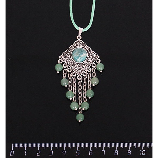 • Кулон из амазонита,"роза", шарик авантюрин зелёный 6мм,  круг 12 мм