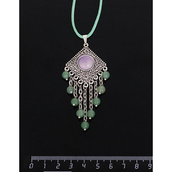 Кулон из аметиста,"роза", шарик авантюрин зелёный 6мм, круг 12 мм
