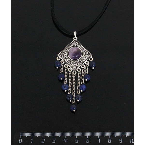 Кулон из аметиста,"роза", шарик лазурит 6мм, круг 12 мм