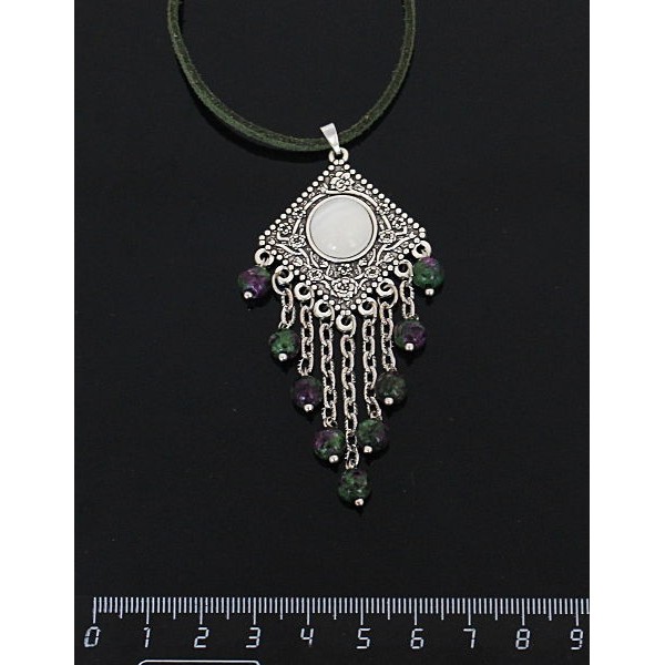 Кулон из кошачьего глаза (синт.),цвет белый,"роза", шарик цоизит 6мм, круг 12 мм