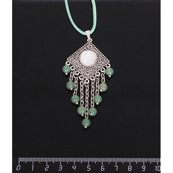 Кулон из кошачьего глаза (синт.),цвет белый,"роза", шарик авантюрин зелёный 6мм, круг 12 мм