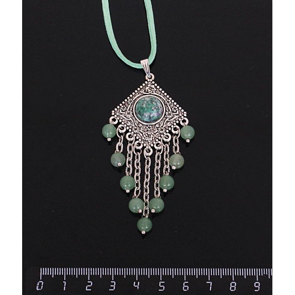 Кулон из цоизита,"роза", шарик авантюрин зелёный 6мм, круг 12 мм