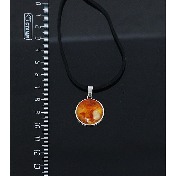 Кулон из янтаря светлого, кабошон-мозаика, круг 12..