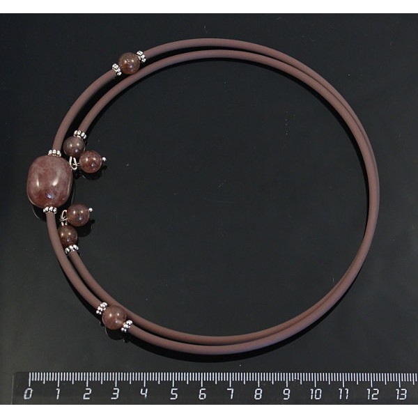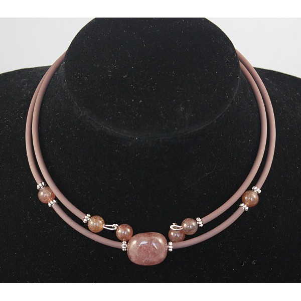Колье из кварца земляничного на струнке, галтовка 20х15мм + шарик 8мм
