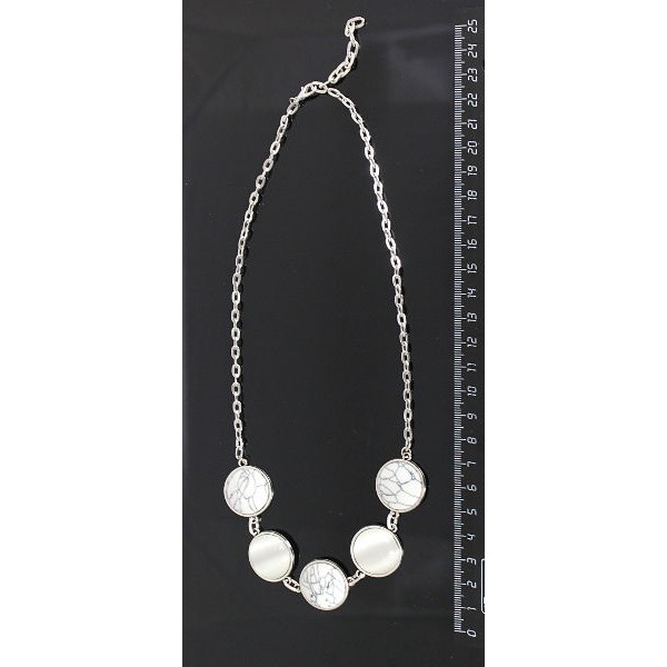 • Колье из каулита и кошачьего глаза (иск.), на цепочке, 5 камней, круг 20мм