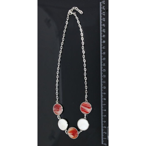 Колье из сердолика, огранка, и перламутра на цепочке, 5 камней, круг 20мм