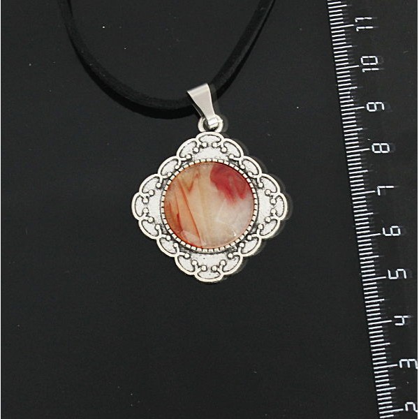 Кулон из сердолика, огранка, основа квадрат 30мм, сеттинг круг 20мм