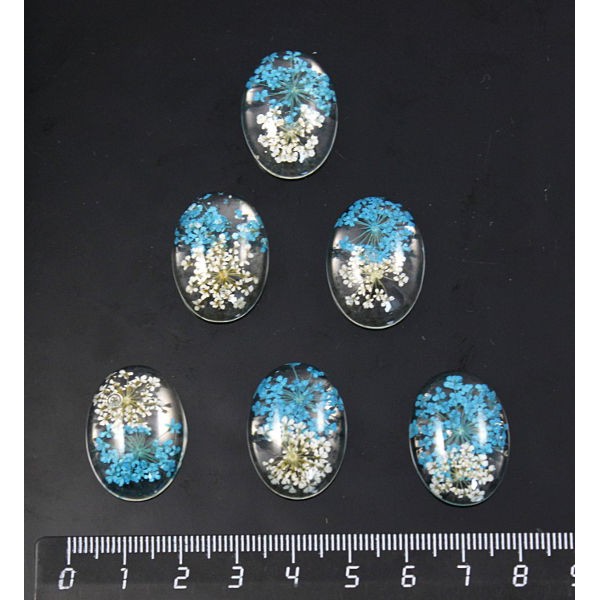 Кабошон пластик "два цветка", овал 25х18мм, цвет морская волна