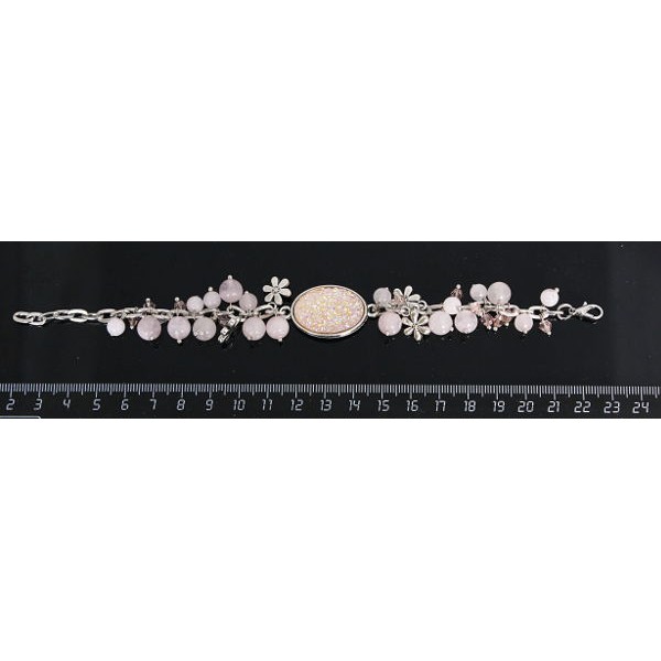 Браслет из кварца розового, овал 25х18мм + шарик, ..